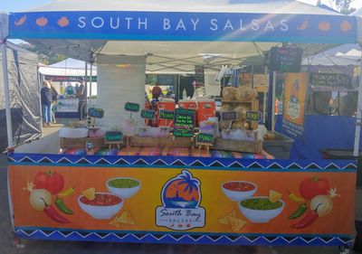 Since the beginning, when we started So Cal Beach Ice. No matter if we were selling in LA at special events or in San Diego at Farmers Markets, we always encountered the dread of winter. Its not easy selling only ice in the winter. I tried so many different products, I would ask the Market managers, all the time, if they would allow me to bring in everything from Hamburgers to Churros to get me through the winters. With every new item required new Equipment. but nothing really ever hit. Til finally one day in early 2018, this opportunity to open a salsa business came along at one of our best Farmers Markets in Poway. We grabbed it and that is how the South Bay Salsas brand was born. In the beginning we only offered 4 different heat levels of salsas and now the line up consists of 8 fabulous flavors and growing. With the support of our customers we hope to be on shelves in stores soon.